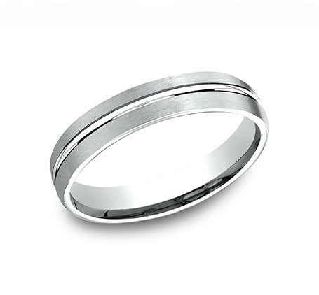 View full detailsThe Circuit 18K White Gold Wedding Band Center Cut Satin Finish 4 mm