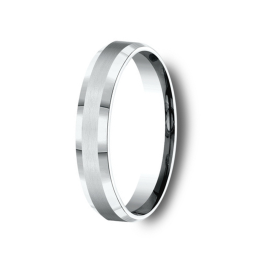 View full detailsThe Chancellor 18K White Gold Wedding Band with Beveled Edge Satin Finish 4mm