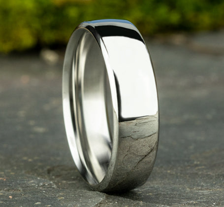 The Elara 18K White Gold Wedding Band with Euro-fit Polished Finish 6.5 mm