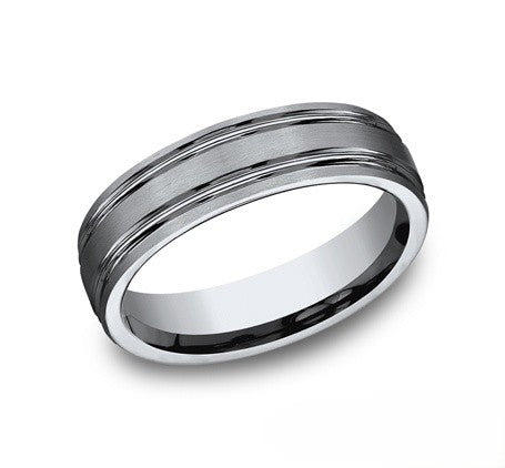 The Frost Titaniun Wedding Band with High Polished Groove Center 6mm
