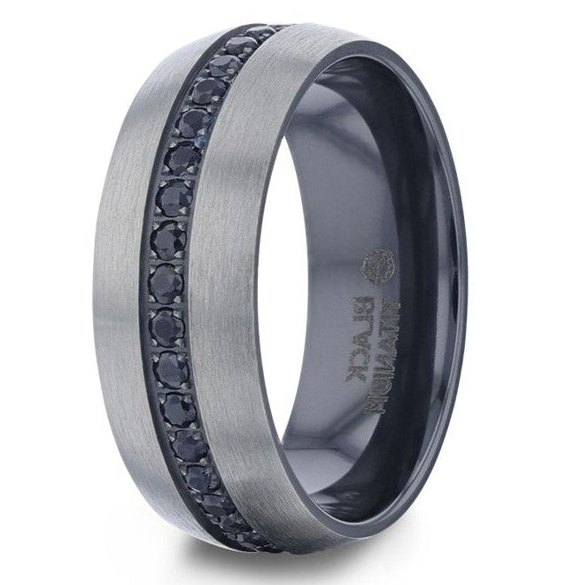 The Aviator Domed Brushed Titanium Men's Band with Black Sapphire Stones Inlay